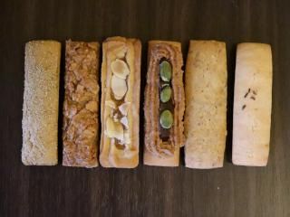 杏、プラム、オレンジ&キャラウェイ、アーモンド、くるみ&スパイス、けしの実の6種類が2個ずつ入っています。