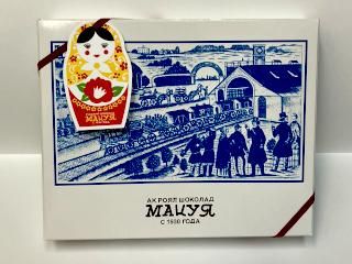 ロシアの民衆版画ルボークの作品をあしらった紙製化粧箱の中に、ロシアの民芸品ホフロマをイメージしたイラストで彩られた詰合せが2箱入っています。